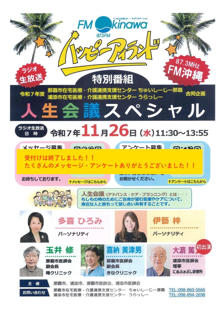 【報告】ハッピーアイランド特別番組「人生会議スペシャル」 | 浦添市在宅医療・介護連携支援センター「うらっしー」