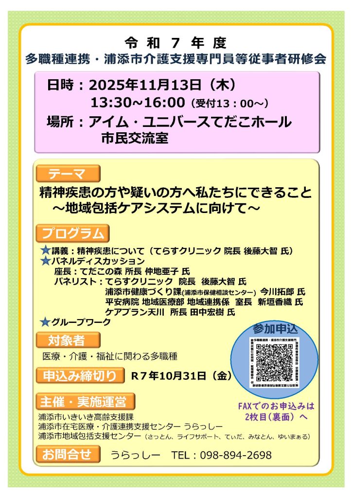 令和7年度 多職種連携研修会・浦添市介護支援専門員等従事者研修会